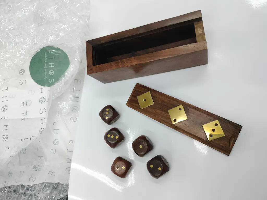 I'm am so pleased with my little mango wood dice box. It's the perfect addition to a backgammon boardgame I made by hand. So pleased. Thank you for this and the free delivery. :) I highly recommend it, great value.